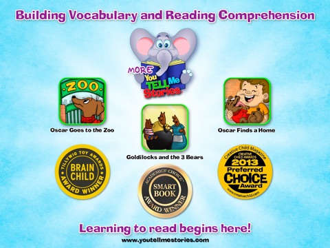 "Oscar Goes to the Zoo is a fun story for children to either be read to or to listen to aloud. The app seems to aim for in-text inference and comprehension. This approach helps children understand story elements immediately as opposed to asking comprehension questions after the story is completed. The story line had a nice message (be who you are) and the characters were age appropriate."-- Academics Choice Reviewer