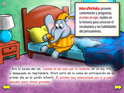 * La técnica de WordWinks entrelaza dentro de la historia preguntas y comentarios que aparecen en la pantalla para maximizar el vocabulario, las habilidades auditivas y la comprensión