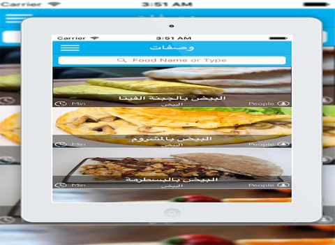 - تطبيق وصفات طبخ هو تطبيق يتيح لك ادخال المكون الذى لديك فمثلا يمكنك ادخال كلمة "لحم" و الضغط على زر بحث لتجد كل الوصفات التى تحتوى على اللحم أو يمكن ادخال كلمة برتقال فتجد كل ما يمكن ان تقوم من به من وصفات تحتوى على البرتقال و هكذا.