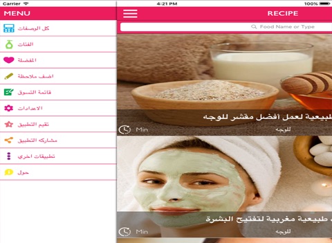 وصفات طبيعية للوجه والشعر هو تطبيق شامل لكل مايخص جمالك سيدتي حيث يحتوي على اسهل الوصفات التجميلية للعناية بالبشرة، الشعر، الوجه والجسم...