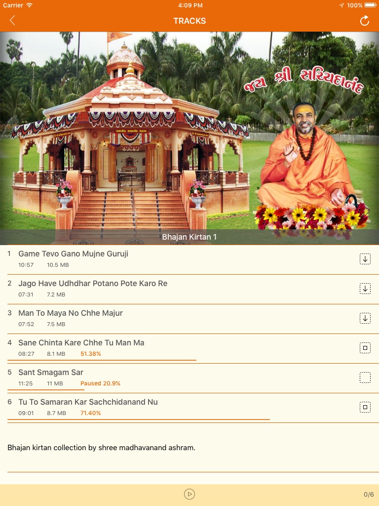 New Bhajan/Satsang will be added as soon as available, use Refresh button (at top right) to refresh album and track list.