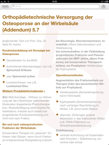 Highlights der App sind u. a. ein Algorithmus für die medikamentöse Therapie,m der unmittelbar zu den empfohlenen Therapiemaßnahmen und Medikationen führt, ein Überblick über die physikalischen, rehabilitativen und orthetischen Maßnahmen bei Osteoporose sowie Kalkulationsschemata für die optimale Supplementation von Kalzium und Vitamin D3. Der Volltext der Leitlinienkurzfassung ist direkt aus der App abrufbar.