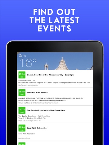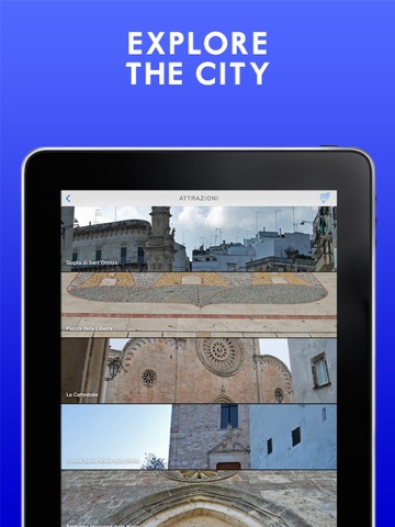 Ostuni ToGo is the best way to discover the wonderful “White City” in Puglia. Here you’ll see how great can be your vacation in Ostuni. Attractions, museums, churches and beaches will always be with you on your Iphone. Are you looking for an hotel, a restaurant or a bar where you can relax at night? No worries! Ostuni To Go will guide you through all the great stuff Ostuni has to offer you. And when you are set to go, click on the Footsteps icon and you’ll know exactly how to reach that place.