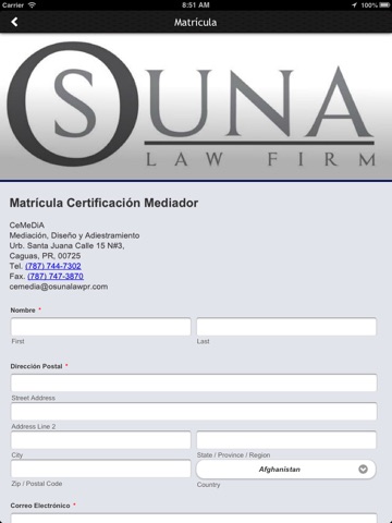 Osuna Law Firm app facilitates the access to legal services in Puerto Rico. The app has detail services tabs, social media tabs, direction view tabs, seminars information tabs, push notifications, calendar tab, contact tab, Download our app free of charge. With this app you will be able to find the protection of our law firm any time using the contact tab.