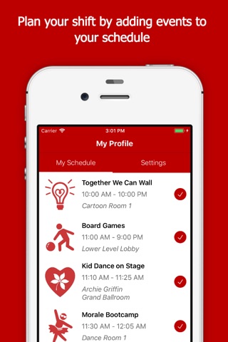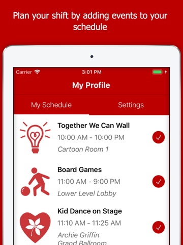 • Keep track of your own schedule by adding events you want to attend.