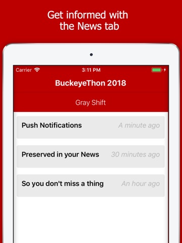This app will provide important information before and during BuckeyeThons Dance Marathon. Utilize this app to create a schedule of activities throughout the event, to take advantage of BuckeyeThons many great resources, and to better connect to the BuckeyeThon kids. Features will include: