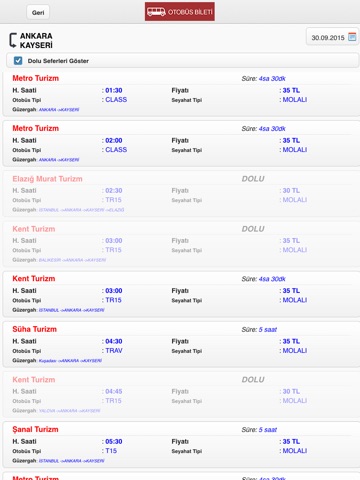 İstediğiniz saatteki firmayı tek tıkla seçebilirsiniz,