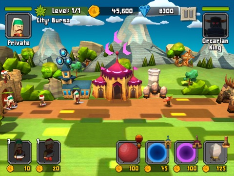 Gain blue crystals, develop your weapons and destroy the wild Orcarians!