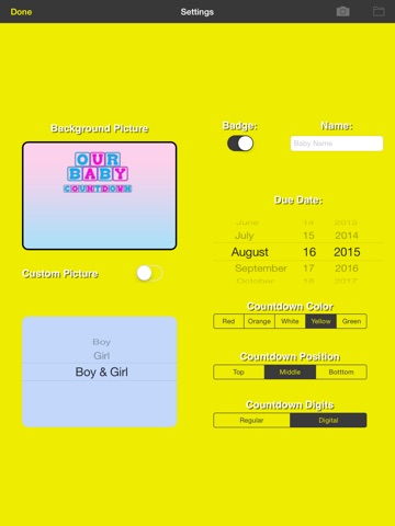 You can easily customize "Our Baby Countdown" by going to the settngs screen.
