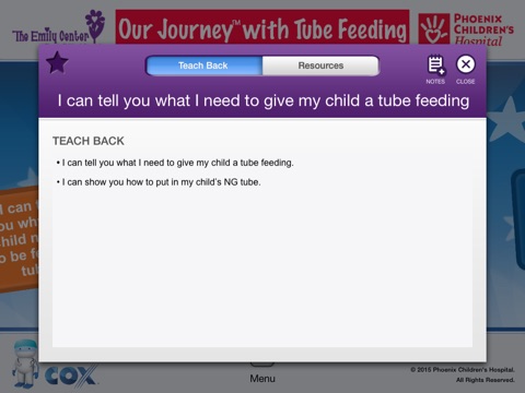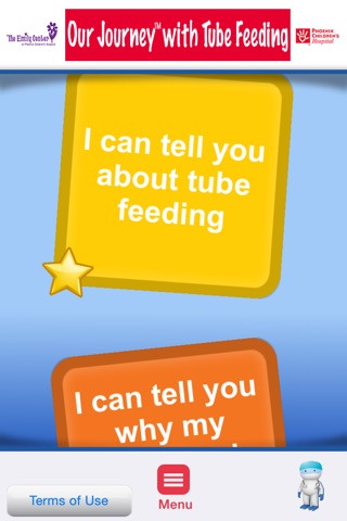 The Emily Center at Phoenix Children’s Hospital presents Our JourneyTM with Tube Feeding as a tool to help families of children needing a tube feeding identify what they need to know before taking their child home from the hospital. Parts of this app may also be applied to a clinic or emergency room visit.