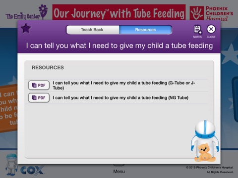 The Our JourneyTM with Tube Feeding mobile app has been funded by a grant from Cox.