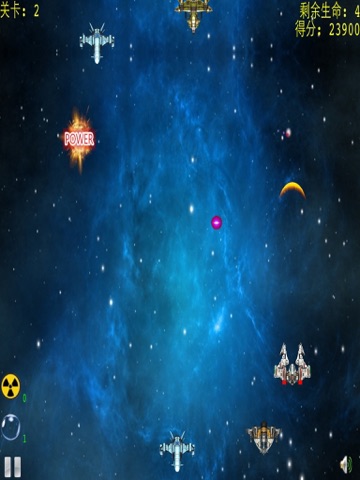 3. 游戏进行中会随机出现护盾、生命、火力加强和清屏核弹四种奖励中的一个。