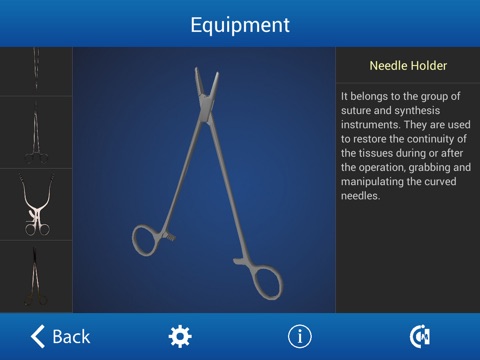 * Interactive 3D models of the instruments used in an ovariectomy surgery. Click on each instrument to learn how to use it.