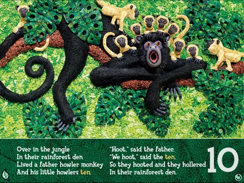 • Children can touch the animal babies or jiggle the screen to watch them perform their distinctive true-to-life actions (for example, the howler monkeys hoot and the boa constrictors squeeze).
