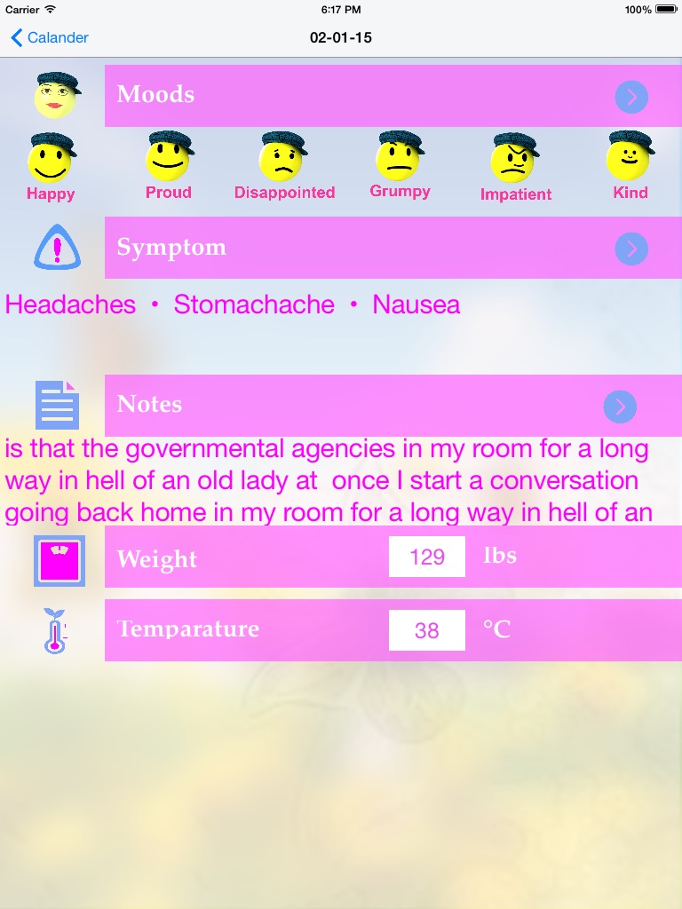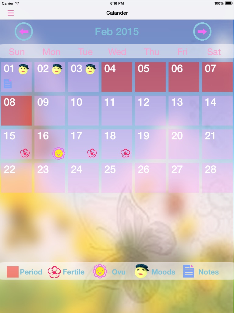 An ovulation predictor is designed to help a women predict when she will be most in period, fertile, ovulation. Monitor and Understand your menstrual cycle with an app that truly gets you. Application has beautiful interface of Calendar view that shows your cycle and also some color coded icon for fertile,ovulation,moods and notes.Track your weight and temperature changes by chart in particular day.