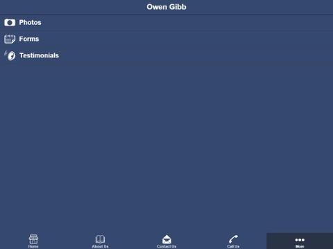 Home, About Us, Contact Us, Call Us, Photos, Forms, Testimonials