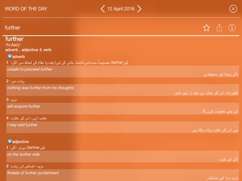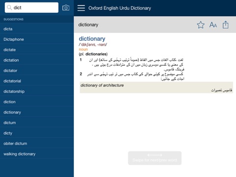 Oxford Urdu Dictionary is a continuation of the bright traditions of research and scholarship of Oxford University Press in the field of lexicography and publishing. It provides grammatical information, etymology with variants, pronunciations, alternatives and antonyms of the entries. As one of the flagship products in the Oxford University Press catalog of dictionaries, the app features learning tools designed by a vastly experienced developer.