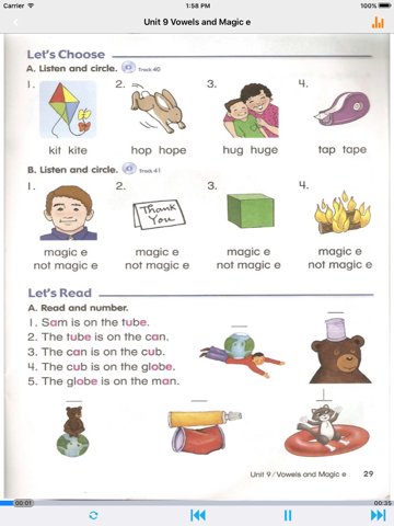 第二冊教授复合子音(bl, br)、长母音(a-e, i-e)及复合双母音(ai, ay)等。