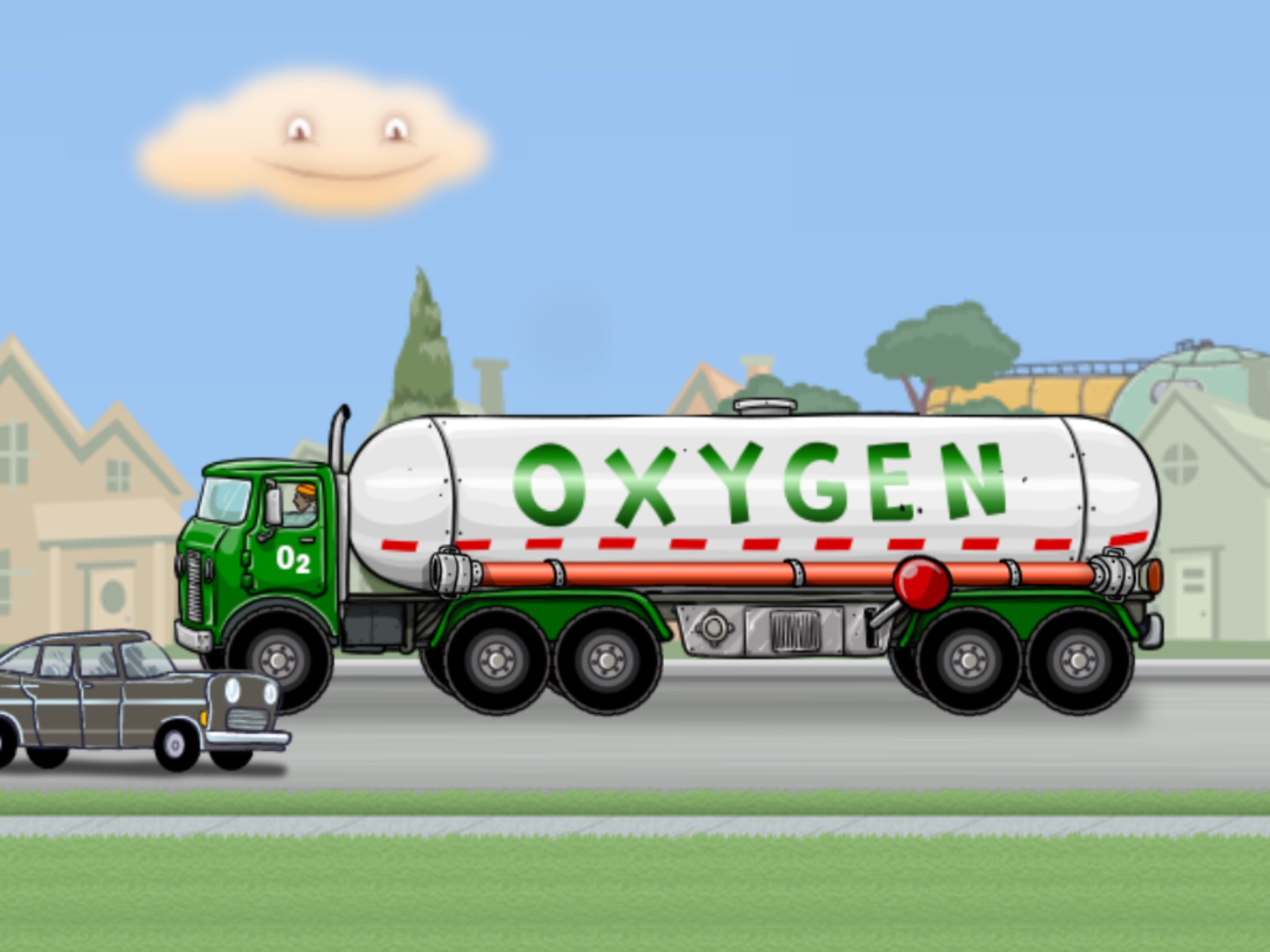 Ride along on an Oxygen Tanker Truck as it stops to deliver Oxygen. First refill your truck at the Oxygen Storage Facility. Then visit submarine ports to fill up Oxygen tanks on submarines, space ports to fill up Oxygen tanks on spaceships, and Train depots to fill up Oxygen tanker cars! Connect the hose to the truck and to each new vehicle to pump the Oxygen until the tank is full. Then launch each vehicle on its way! When the the truck is empty it’s time to go back to the Oxygen Storage Facility to get more Oxygen!