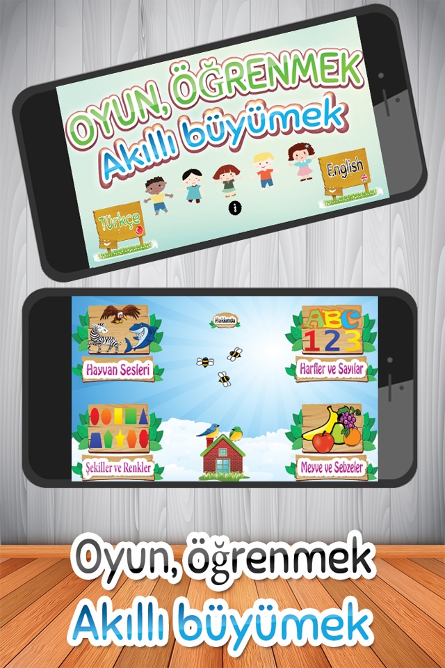• Oyun, öğrenmek, Akıllı büyümek. Bu ABC öğrenmek için çocuğunuza yardımcı olan bir eğitim oyunu, Sayılar, Şekiller, Meyveler, Sebzeler, Renkler, işitme ve dokunma yoluyla Hayvanlar.