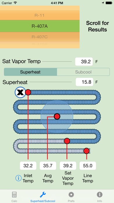 This comprehensive Pressure/Temperature calculation tool from National Refrigerants provides several unique features designed to make the HVAC/R technician’s job easier. This app can calculate a simple pressure/temperature relationship or calculate superheat/subcool temperatures. The user can input pressure or temperature(s) on any screen and the other values are automatically calculated and displayed. For refrigerant blends, both saturated vapor and saturated liquid values are displayed. Within the superheat/subcool screen, a graphic display for blends will show the entering, mid-point, and outlet temperature as well as line temperature.