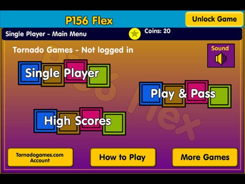 Project 156 is a "match 3" type game. Select groups of boxes that match in color. Groups sizes change depending on the round. Try to work through all 31 levels. Each level will change the number of blocks required to complete the level and the group size will change as well. The game has a personal high score list and can be used with your Tornado Games Account to post your score world wide.