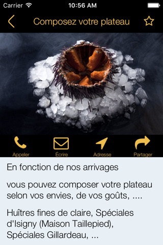 Notre service et notre savoir faire nous amène à vous proposer de magnifiques créations de plateaux de fruits de mers, plateau plancha, plateau sashimi qui sauront ravir vos papilles et vos invités. Soupe de poissons, bouillabaisse, marmite du pêcheur….nous pouvons vous conseiller, vous guider pour réussir au mieux vos plats.