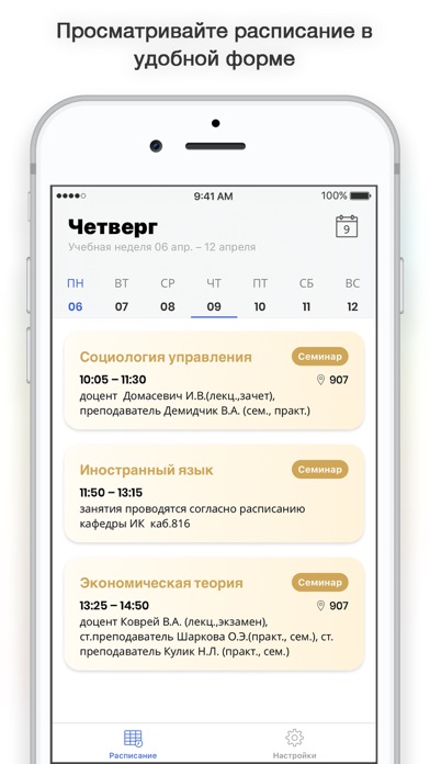 Приложение позволяет в простой и понятной форме просматривать расписание занятий для студентов Академии Управления.