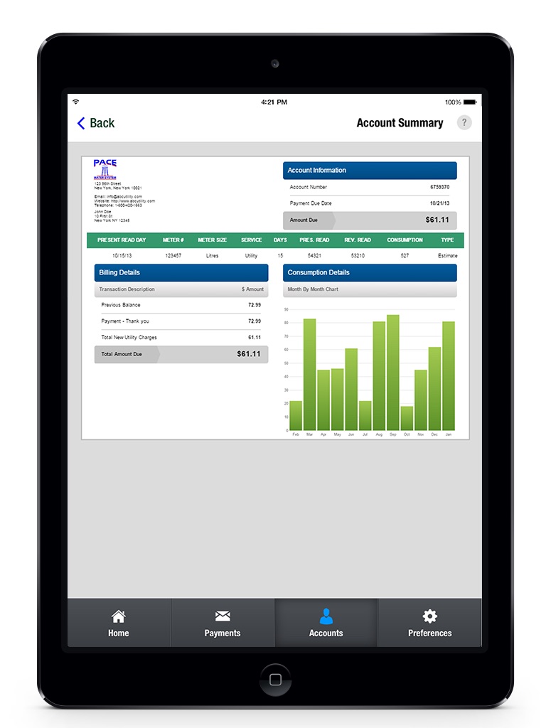 Pace Water mobile app powered by Paymentus Corporation.