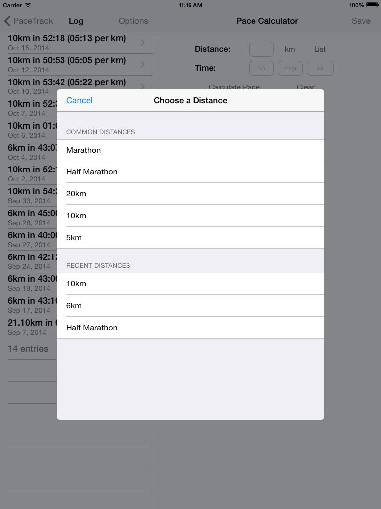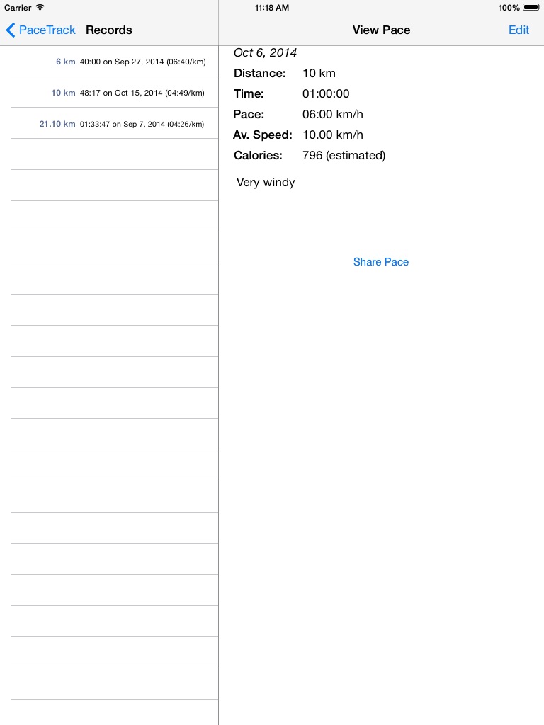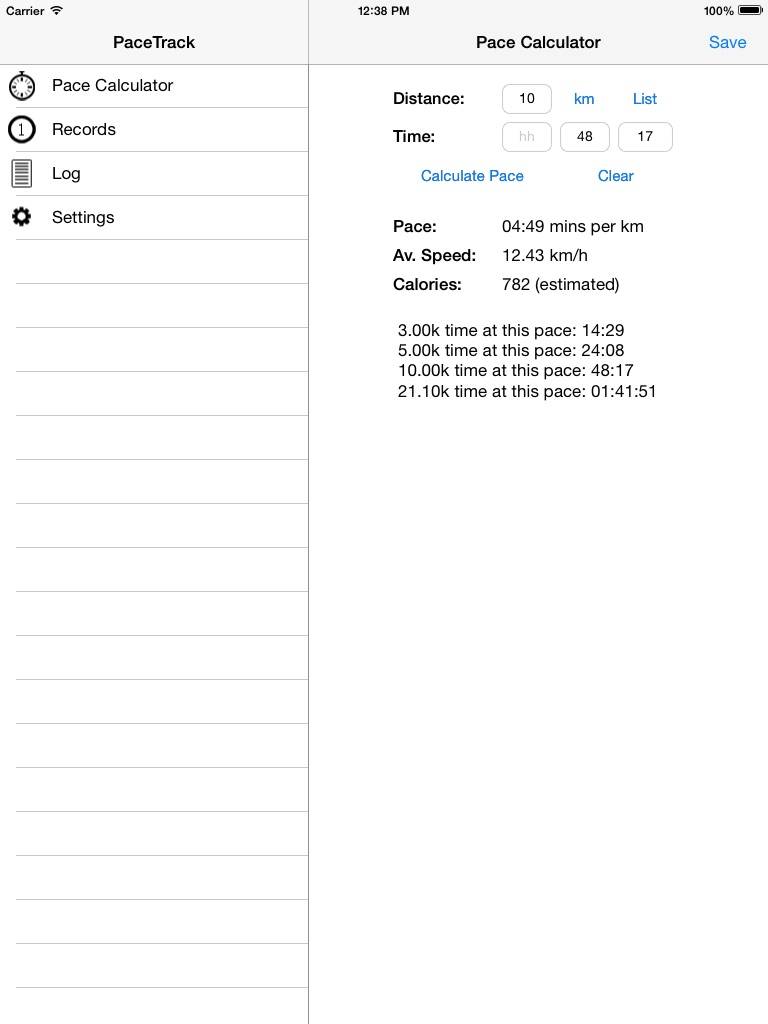 Keep track of your running and jogging records in the easy to use PaceTrack app: