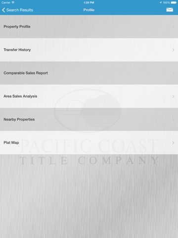 With the Pacific Coast Mobile Title application, Real Estate professionals can get immediate property information on their iPhone or iPad. By entering a Property Address, Owners Name, Assessors Parcel Number (APN) or search Near by Properties, Pacific Coast Mobile Title can provide real time access to valuable property information.