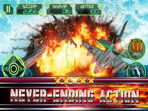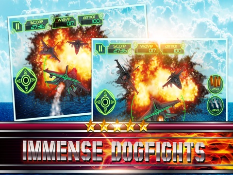 Racing into battle is your only mission here. War will be lost should you fail to destroy the enemies jet fighters !