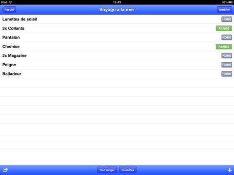 Petite application sans prétention mais qui de retrouve bien utile au final avant chaque déplacement. On peut customiser la liste des affaires à emporter et la liste pré-établie est un bon reminder pour compléter sa valise.
