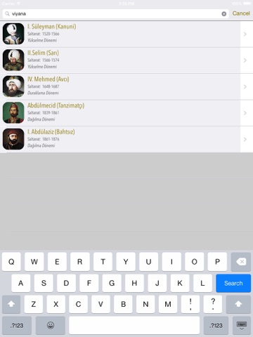 Gelişmiş sezgisel Arama motoru ile; tarih, yer, savaş, sefer girerek, etkilenen padişah ya da padişahları görebilme.