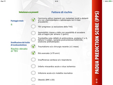 Applicazione destinata ai Medici, contenente due algoritmi: il primo per il calcolo del rischio trombotico nei pazienti medici ospedalizzati, il secondo per il calcolo del rischio emorragico nei pazienti medici ospedalizzati non chirurgici. Si basa su applicazioni per il calcolo/somma dei punteggi, con estrapolazione della relativa stratificazione del rischio.