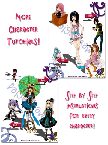 •Step by step tutorials to teach you how to draw hands, eyes, faces and complete characters. Up to 29 unique detailed steps for each character.