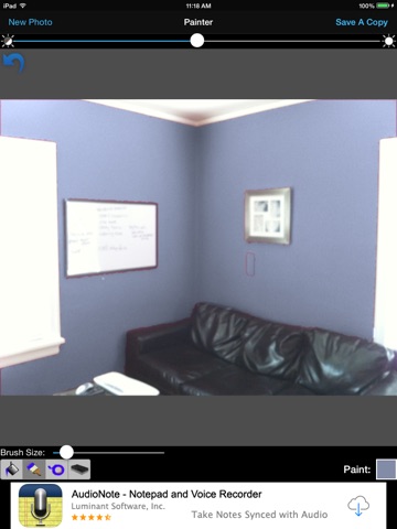 Paint Testers variety of tools and smart paint bucket make it easy to change the wall color in a picture in a matter of seconds!