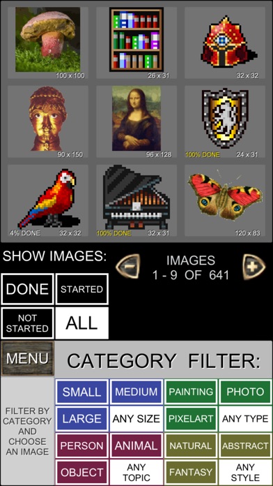 Colour in hundreds of images of various styles, pixelart as well as photos and paintings, animals and landmarks and flowers and portraits. Suitable for adults to relax, and kids to enjoy.