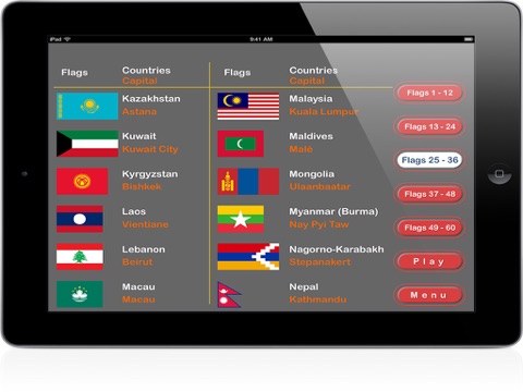 PairPlay Asia is a memory card game designed to help you improve your memory skills. PairPlay Asia uses the countries, capitals and their flags of the Asia continent. Find pairs of cards while you learn the countries and their capitals.