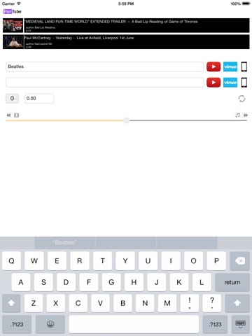 You can search original videos from keywords input and search buttons. and select from the search results in the list appeared. or you can choose your own videos from your collection. then you can choose each video for your Pair. if you need, you can adjust start timing with slider or input seconds,