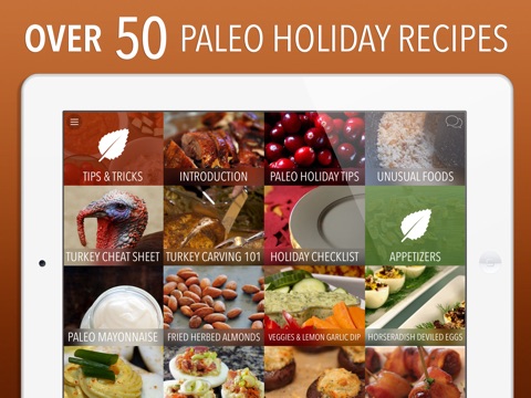 We’ve done the work of finding great Paleo-friendly holiday recipes, so that you can focus on enjoying yourself. Just like our popular Paleo Meal Plan, we’ve crammed this app full of tips and recipes, from how to prepare a turkey and stuffing to making whipped cream from coconut milk.