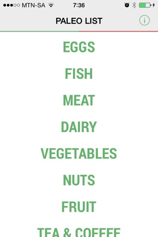 Paleo List is a simple list of foods to eat and foods to avoid if you follow a Paleolithic diet. Its a quick and easy reference guide to buying and eating correctly. Green means eat. Red means avoid. Tap on a food item to view its description.