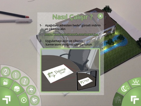 İzmir Urlada gerçekleştirilen Palmiye Park Mare projesinin detaylarına ulaşabileceğiniz arttırılmış gerçeklik uygulaması. Uygulamayı indirin, kameranızı hedef görsele tutun ve Mare projesinin 3 boyutlu görsellerini masanızın üzerine yansıtın !