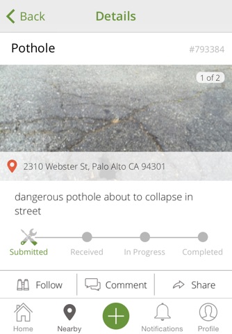 PaloAlto311 is a multi-platform solution for providing Palo Alto residents, businesses, and visitors access to a set of local government-provided services, 24-hours a day, 7 days a week. With this smartphone app, service requests such as reporting a street issue is easily submitted by completing a short description of the request. A picture of the issue can be included in order to provide additional details. The app will automatically know the issue location and will ensure that the issue is sent to the appropriate department at the City. The submitter will be able to track the request all the way through its resolution right from the phone.