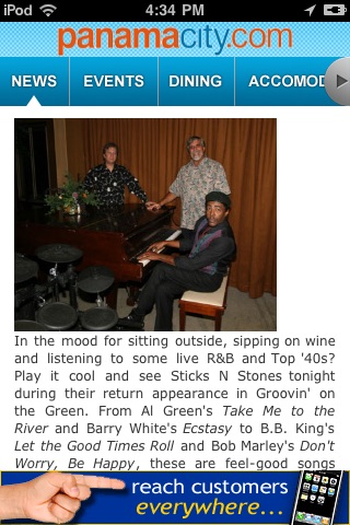 The "Panama City Beach, Florida" app features real-time information about local events, restaurants, shopping, nightlife and other activities. The free app also features GPS mapping, a Facebook interface, weather reports and fun local user-submitted photos and videos.