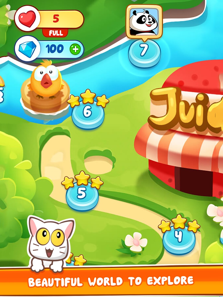 Panda Juice, another free match 3 game from Veewo brings you a fresh new Journey.