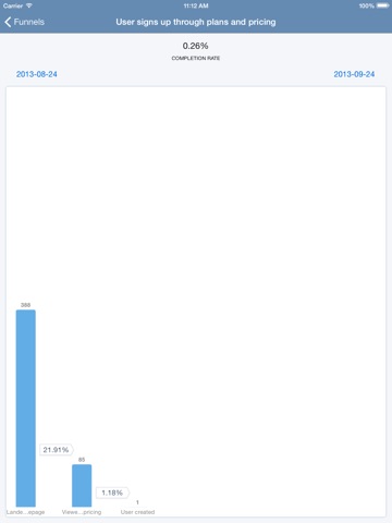 Panel lets you access your all important data from Mixpanel straight on your iPhone or iPad. View your funnel data, engage with people who are visiting your products, or leave your device to watch live events coming through via Panel.