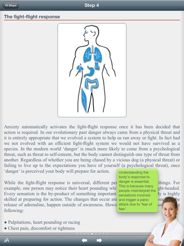 Information is given about the cause of panic attacks including stress, depression, health anxiety and obsessive-compulsive disorder. The way your body responds to danger is described and you can see how misinterpreting this response leads to panic. Work out why panic attacks are happening to you and develop a healthy voice to talk back to concerns of catastrophe. Panic attacks do not mean that you are having a heart attack, going mad or losing control and if you decide to act as if nothing is happening no one is likely to notice anything. Instant help is provided to calm yourself down when required but this app will do much more as it is designed to stop panic attacks for good. Over 50 different panic attacks are described and there are case studies taken from real life. Use for self-help or with a therapist.