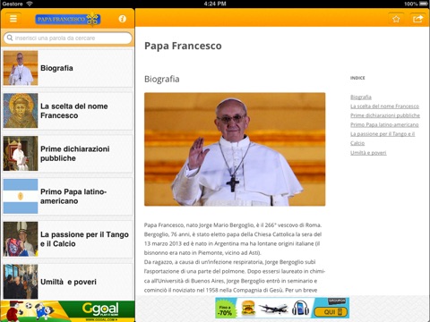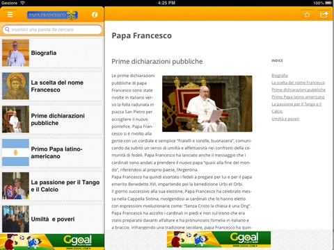 Lapp dedicata al nuovo pontefice Papa Francesco con informazioni sulla biografia, curiosità e dichiarazioni ufficiali. Il Papa "semplice" già amato da milioni di persone in tutto il mondo.