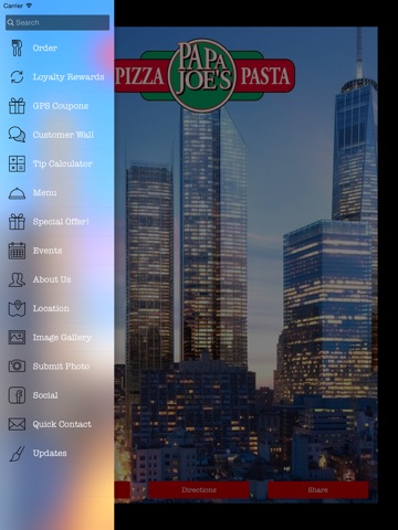 Welcome to the Papa Joes mobile app! For over 25 years weve been your neighborhood pizzeria and, to serve you better, weve gone mobile! With a responsive and easy to use food ordering tab, and other customer friendly features, enjoy your favorite pizza and pasta faster and easier with our mobile app. Youll be able to receive special offers, view upcoming events, unlock rewards, receive location based special offers and much, much more!